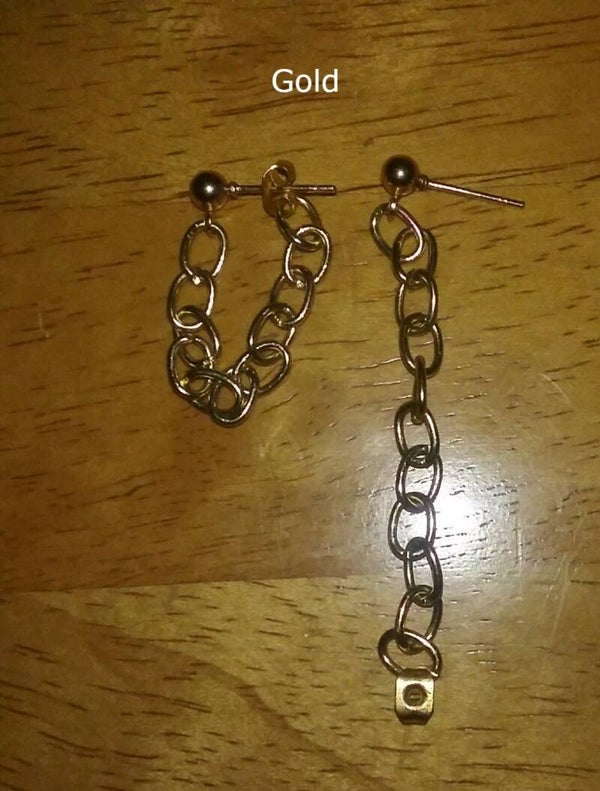 This stylish earring comes in both silver and gold. There are also three size options for the ball post. The fit is very comfortable. You'll forget you are wearing them. Perfect for everyday wear. You won't have to worry about losing the earring backs as they are connected to the chain.