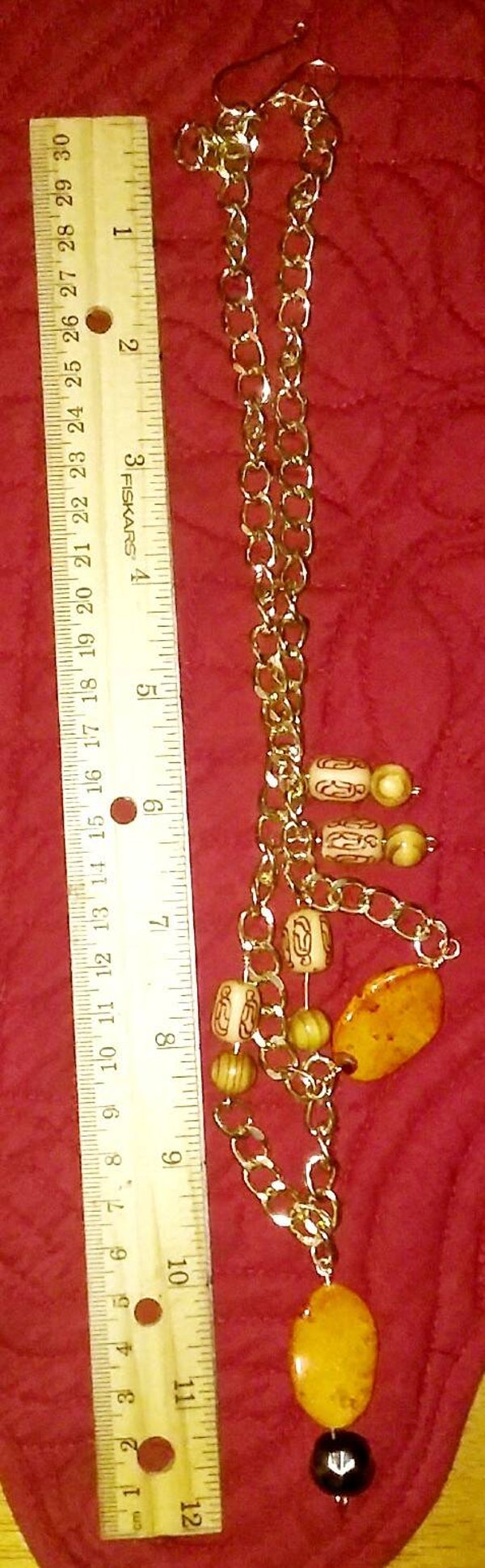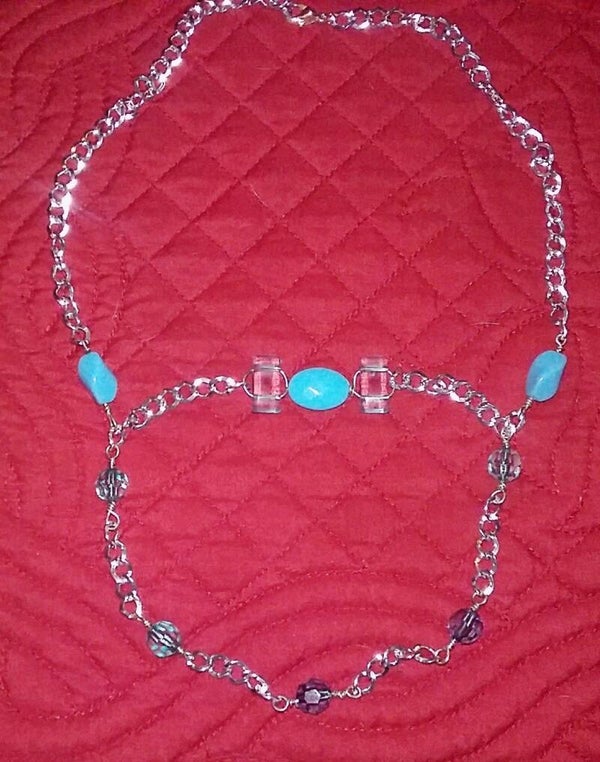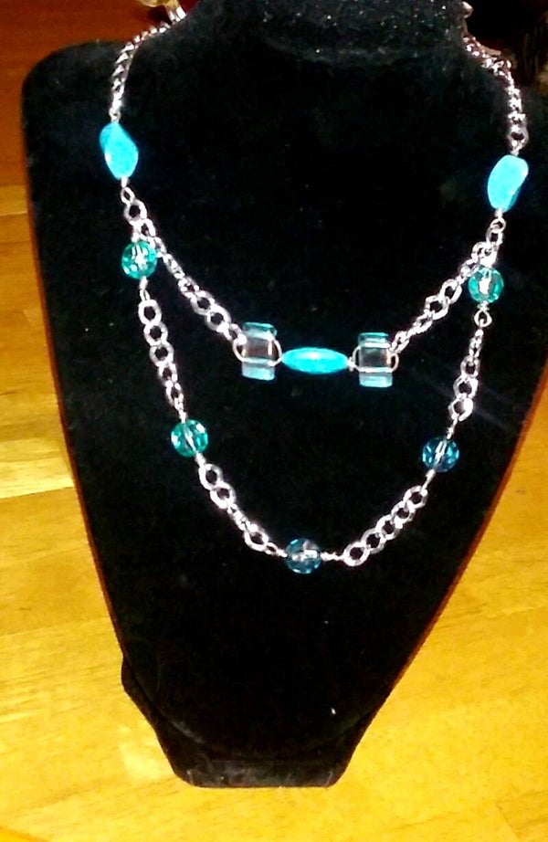 These adorable, quaint necklaces come in two styles. Style #1 is a silver chain adorned with sky blue glass beads. Style #2 is a gold chain decorated with tribal glass beads. Both are perfect for casual, business, and formal attire.